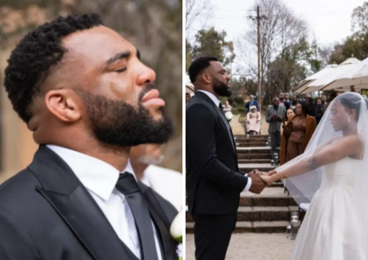 Springbok and Sharks player Vincent Tshituka has shared a look at his wedding, featuring him weeping over his bride, Katlego Monare.